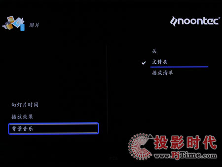 圖片菜單提供了幻燈片時(shí)間、播放效果、背景音樂(lè)的設(shè)定。