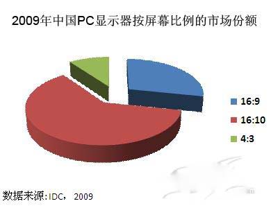 16:9產(chǎn)品在2009年的增長(zhǎng)主要有兩點(diǎn)原因。其一是上游的面板廠商出于切割成本的考慮,增加了對(duì)16:9產(chǎn)品的生產(chǎn)推廣力度,這種力度進(jìn)而傳導(dǎo)到顯示器廠商,使整個(gè)市場(chǎng)對(duì)16:9產(chǎn)品的推廣力度加大。18.5寸寬屏、20寸寬屏以及21.5寸寬屏的產(chǎn)品成為市場(chǎng)的推廣重點(diǎn)。其二則是消費(fèi)者對(duì)16:9產(chǎn)品的接受度也越來越高,娛樂和環(huán)保節(jié)能逐漸成為消費(fèi)者的主流訴求。但是,在商用需求方面,16:9的接受度還相對(duì)較低。出于辦公目的的考慮,近似尺寸的16:10產(chǎn)品,如19寸寬屏以及22寸寬屏則更受商務(wù)用戶的歡迎。根據(jù)IDC的研究數(shù)據(jù),截至2009年第四季度,16:9的比例已經(jīng)占到總體的32%,由于第四季度商務(wù)采購(gòu)比較多,該季度16:9的份額較上季度回落近兩個(gè)百分點(diǎn),但是相對(duì)于2008年第四季度的不到7%的比例,16:9的份額已經(jīng)增長(zhǎng)了25%。隨著上游面板廠商與PC顯示器廠商的繼續(xù)推廣以及更多大尺寸16:9產(chǎn)品的加入,未來16:9的市場(chǎng)份額將繼續(xù)增長(zhǎng)。