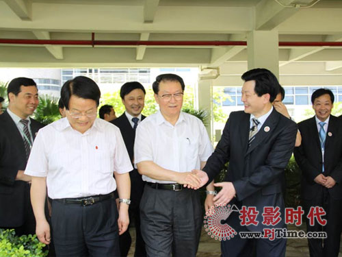 李長春指出“影視設備生產(chǎn)制造是珠三角的一個支柱產(chǎn)業(yè),是珠三角在全國建立產(chǎn)業(yè)形象的一個重要產(chǎn)業(yè)。但長期以來,珠三角的影視設備始終缺少核心技術。今天看了你們的投影機,有自主知識產(chǎn)權,而且跟世界上幾大骨干企業(yè)可以比肩了,這是我們在自主創(chuàng)新方面的重大成果,我感到非常高興。希望你們繼續(xù)努力,向華為等企業(yè)學習,力爭進入本行業(yè)的全球三甲!