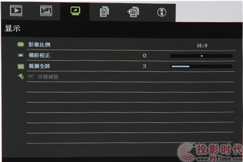 麗訊H5085家庭投影機菜單采用橫向OSD設計,各項功能調(diào)節(jié)設置的比較詳細。