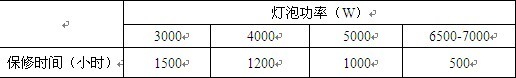 表2、數(shù)字電影放映機(jī)氙燈燈泡保修時(shí)間