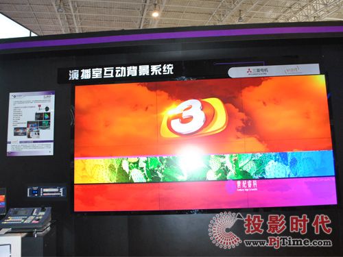 展會期間,三菱電機(jī)展示了超大尺寸LED顯示屏,同時展出的還有LED大屏顯示控制系統(tǒng)。DLP背投拼接大屏為目前最受推崇和成熟的演播室背景系統(tǒng),在國內(nèi)外眾多電視臺得到了成功的應(yīng)用。
