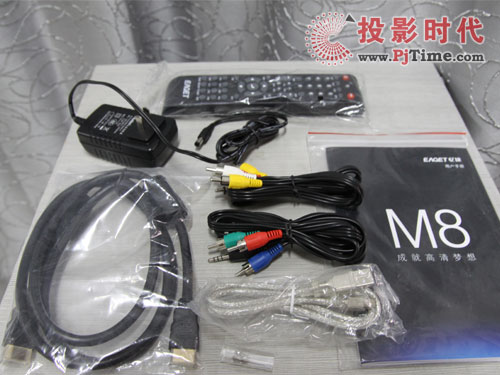M8隨機配送的有遙控器,電源,HDMI線,AV線,色差線,USB線,硬盤安裝螺絲,說明書,保修卡等,在同類產品中算是比較齊全的。