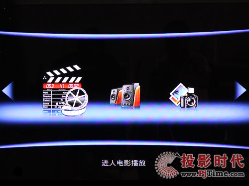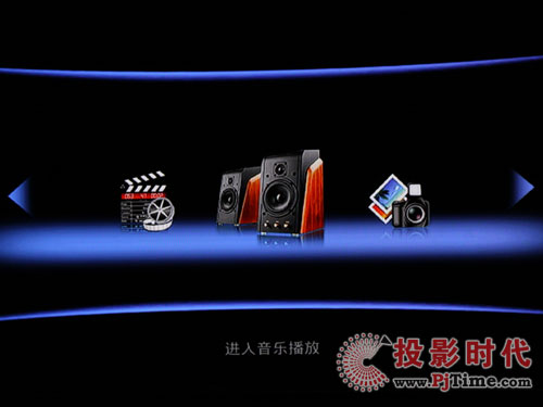憶捷M8高清播放機的菜單界面設置簡潔明了,用戶播放媒體時,由主菜單選擇電影、音樂或圖片菜單,就可以進入相應媒體的播放界面。