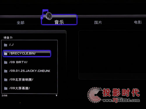 M8可以播放內(nèi)置硬盤、USB設備、存儲卡、光盤、網(wǎng)絡上的媒體文件,如果相應存儲設備沒有連接上M8,那么該選項是灰色無法操作的狀態(tài)。