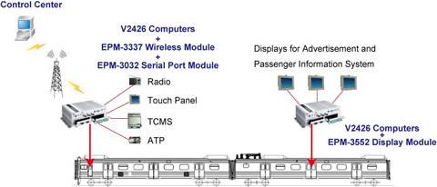 Moxa V2426 計算機,EPM-3032 串口模塊,和EPM-3552顯示器模塊提供6個串口和3個獨立顯示器連接,這一完美組合完全滿足客戶對于車載乘客信息系統(tǒng)的需求。