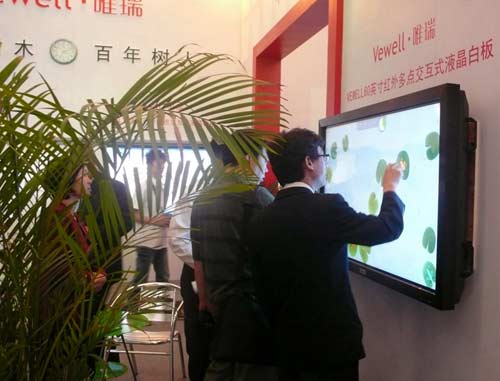 隨著2011年國(guó)家針對(duì)教育行業(yè),特別是普教領(lǐng)域財(cái)政撥款的放開(kāi),整個(gè)普教系統(tǒng)的信息化需求也就開(kāi)始凸顯出來(lái)。作為國(guó)內(nèi)領(lǐng)先的平板顯示設(shè)備、及商用顯示方案提供商,唯瑞科技針對(duì)教育行業(yè)亦有著成熟的產(chǎn)品及解決方案,其液晶拼接墻系統(tǒng)、信息發(fā)布系統(tǒng)、液晶白板等曾廣泛應(yīng)用于清華大學(xué)、哈工大、北科大、北航、國(guó)子監(jiān)中學(xué)、景山學(xué)校等。此次展會(huì)上展出的交互式液晶白板系列產(chǎn)品,更是吸引了眾多的教育行業(yè)客戶現(xiàn)場(chǎng)體驗(yàn)和咨詢。