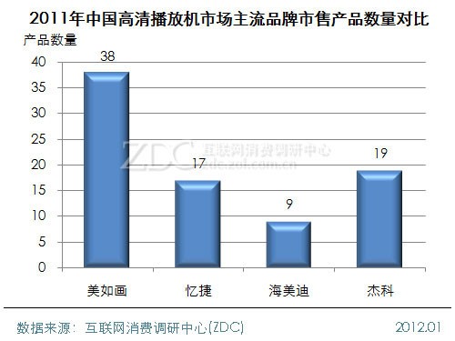 (圖) 2011年中國高清播放機市場主流品牌市售產品數量對比