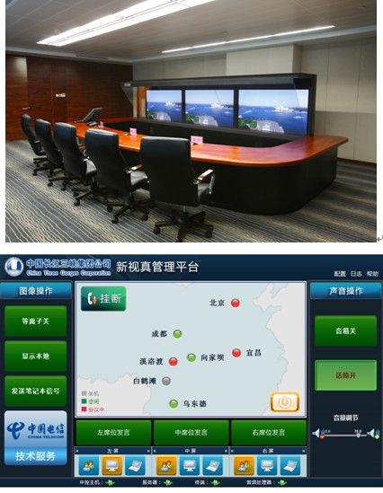 長江三峽集團六地會議室(北京、宜昌、成都、向家壩、溪洛渡、烏東德)配置“真視通”高清三屏遠程呈現(xiàn)產(chǎn)品各一套;