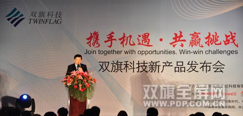 2012年3月22日,由北京雙旗世紀(jì)科技有限公司舉辦以“攜手機(jī)遇,共贏挑戰(zhàn)”為主題的“2012雙旗科技新產(chǎn)品發(fā)布會(huì)”在北京新世紀(jì)日航酒店盛大舉行,此次會(huì)議規(guī)?涨,陣容強(qiáng)大,全球領(lǐng)先的商用顯示解決方案提供商雙旗科技攜手夏普、三菱、GE、唯瑞、LG等知名廠商同臺(tái)亮相,吸引了來(lái)自全國(guó)各地的渠道合作伙伴、集成商等嘉賓的積極參與。