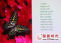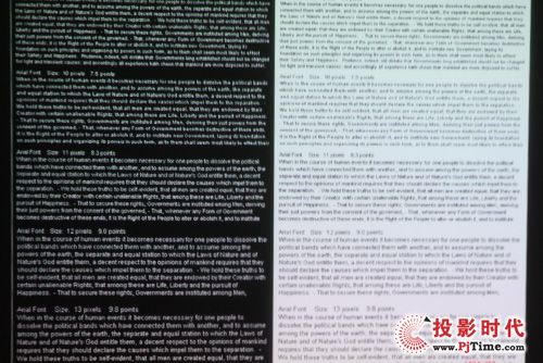 雅圖寬屏高亮LED投影機PL411投影的文字效果,大家從上圖中可以看出,文字顯示清晰。白底黑字、黑底白字對比明顯,表現(xiàn)不俗。(實際投影效果要比拍攝圖片清晰得多)