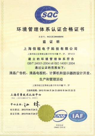 信頤通過ISO14001:2004環(huán)境管理體系認(rèn)證