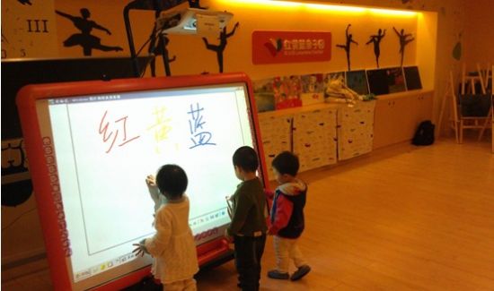 以北京紅黃藍(lán)方莊幼兒園為例,該園采用鴻合HV-K6075幼教白板和日立A85超短焦投影機(jī)。鴻合HV-K6075系列幼教白板,采用紅外感應(yīng)技術(shù),通過與投影機(jī)、計(jì)算機(jī)的配合使用,交互式電子白板可以成為大型的書寫屏,無需專用筆,即可直接在電子白板上操作電腦、書寫、批注課件,實(shí)現(xiàn)真正的無塵交互書寫。另外,白板板面獨(dú)有的高增益膜,板面無反光,保護(hù)學(xué)生視力。