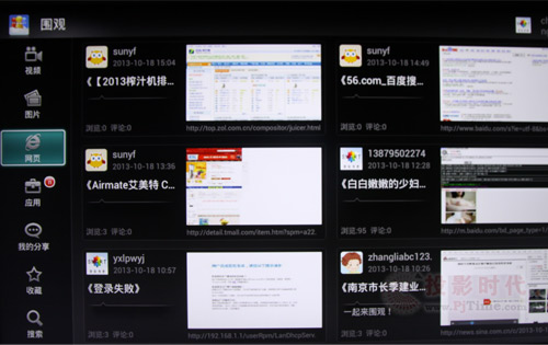 圍觀功能對于喜歡分享的網(wǎng)友來說,比較有意思。大家在這款電視上看過的網(wǎng)絡視頻、頁面,還是玩過的應用,都可以通過綁定的微博賬號一鍵分享給好友,不用再去單獨編輯微博內(nèi)容,也就是“圍觀”,它是智能電視用戶間的一個交流方式,也是將社交軟件與電視端結(jié)合得更深的一項設計。