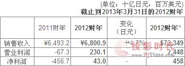 截止到2013年3月31日的2012財年綜合業(yè)績
