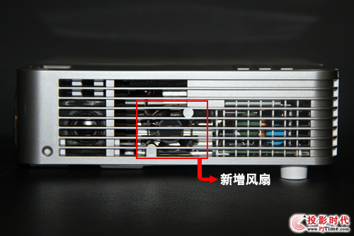 明基GP30外觀上最大的差別就是底部的DVD插槽已去掉,取而代之的則是兩排小孔。此外,在機(jī)身靠近鏡頭一側(cè)的側(cè)面,從外往里看,增加了一組風(fēng)扇,可見(jiàn)明基的用心之處。就算用戶長(zhǎng)時(shí)間使用,在風(fēng)扇的助力下,確保了快速散熱,提升機(jī)器的穩(wěn)定性。