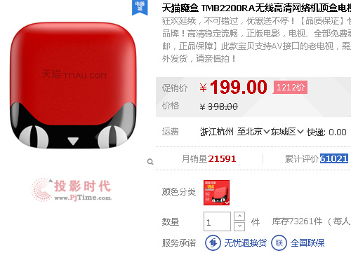 天貓魔盒升級(jí)版TMB2200RA在配置方面有點(diǎn)變化,變成A7四核了。理論上速度會(huì)快一點(diǎn),算是進(jìn)步吧?傊,天貓魔盒從去年雙十一的免費(fèi)送,到今年賣¥199元,喜歡購物的你,帶它回家又何妨。
