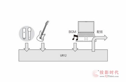 Loopback 功能可以為網(wǎng)絡(luò)視頻傳送提供極大的便利。在該功能的幫助下,可以將傳送至 UR12 中的麥克風(fēng)、吉他等音頻信號(hào)與電腦中播放的 BGM 音頻信號(hào)進(jìn)行雙通道混合,即可通過電腦向網(wǎng)絡(luò)發(fā)布視頻。