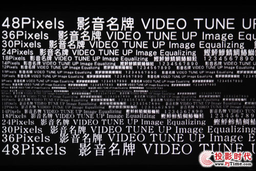 在字體清晰度測試中,宏碁P1373WB商教投影機(jī)表現(xiàn)非常不錯(cuò),不管是文字、英文或是數(shù)字都能展示的很清晰,并且畫面沒有明顯的畸變,可以完美勝任各種商務(wù)演示需求。