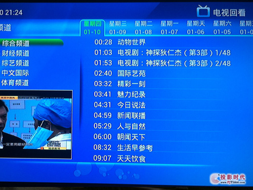接下來,投影時代網(wǎng)將以歌華二代高清機頂盒為例,和大家聊聊回看功能。現(xiàn)在的智能盒子,基本上都帶有電視回放功能。不過,大部分盒子的回放功能免費的臺不多,有的僅限CCTV和BTV,是免費的。