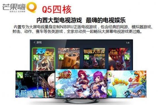在電視上玩游戲,不一定非得要游戲機(jī),只要給電視配上一個(gè)電視盒子同樣可以,海美迪早在它推出雙核Q系時(shí)便大膽的作出了這樣的嘗試。得益于海思四核CPU,Mali-450MP6,6+2核 600MHz GPU強(qiáng)大的硬件性能,相信芒果嗨Q Q5四核在實(shí)際游戲體驗(yàn)中,無(wú)論是在速度、畫面、穩(wěn)定性、解碼能力等多方面的都有出色表現(xiàn),使它能完美勝任3D游戲的運(yùn)行,強(qiáng)勁的硬件性能與3D引擎的真實(shí)場(chǎng)景完美結(jié)合,讓運(yùn)行速度達(dá)到前所未有的質(zhì)的飛躍,再加上NIBIRU正版的游戲及海美迪專用呼雷豹游戲手柄,更多彩的游戲場(chǎng)景、更豐富的游戲內(nèi)容、更迅捷的游戲響應(yīng)速度、更靈活的游戲操作,將使游戲效果展現(xiàn)更加透徹,游戲體驗(yàn)更加出色,讓每個(gè)喜歡游戲的玩家,都能體驗(yàn)盒子玩游戲的極致娛樂(lè)。