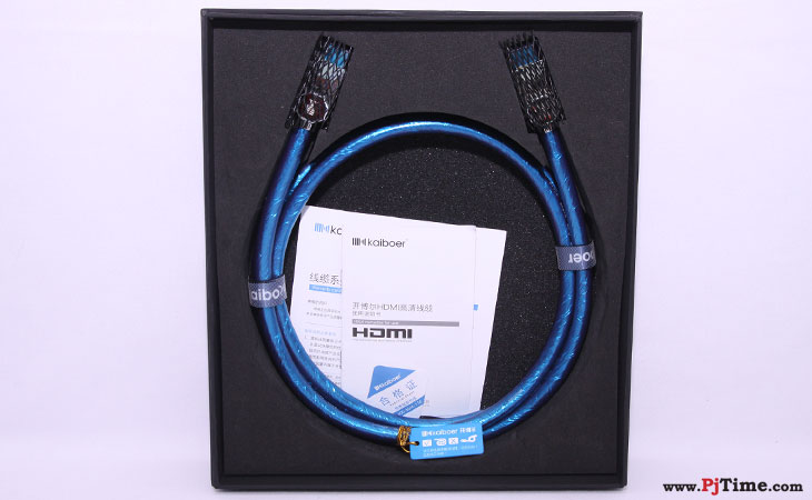 本次試用的開博爾T系列HDMI線纜官方型號(hào)為KBEH-T、線材長(zhǎng)度為1.8米HDMI2.0版、線材連接頭采用24K銅殼鍍金接頭,采用專利技術(shù)的藍(lán)色膠芯設(shè)計(jì)、導(dǎo)體為24AWG全鍍銀銅芯、線纜采用多達(dá)四層屏蔽層、絕緣體采用日本進(jìn)口高密度發(fā)泡PE材質(zhì)、外層防護(hù)層采用進(jìn)口藍(lán)色透明阻燃PVC。