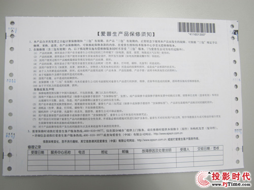 5、  識別保修卡:行貨正品附帶的保修卡一般印刷精美,通常帶有機打的序列號,這個號碼與機身上標注的一致。用戶可以通過投影機廠商的官方網(wǎng)站、服務電話驗證序列號。