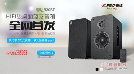 備受期待的奮達HIFI級2.0桌面藍牙音箱R30BT于4月22日正式登陸京東商城開啟預約啦!新品預約報價僅399元,現(xiàn)在登陸京東商城參與預約活動還有機會贏取豐厚大獎哦!