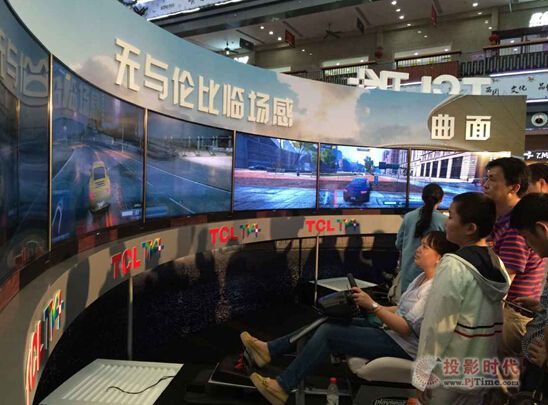“武漢國際賽車場還在建設中,不過這次用曲面三聯(lián)屏玩賽車游戲,臨場感超爽,風馳電掣的感覺,絕對是現(xiàn)實版的速度與激情!爆F(xiàn)場消費者體驗曲面H8800后無不感嘆。作為曲面產品區(qū)最大的亮點,用六臺H8800拼成的兩個三聯(lián)屏給游戲愛好者不少驚喜。據(jù)現(xiàn)場工作人員介紹H8800獨有的4000R 曲率打造了迄今為止弧度最大的新紀錄,具備與人眼球“同弧度”的曲率特征,一舉實現(xiàn)8大畫質提升,帶來媲美IMAX影院級的極致體驗。據(jù)了解,目前曲面電視普遍都局限在6000R曲率的水平,而TCL率先將曲率做到4000R,是行業(yè)技術的一大飛躍。