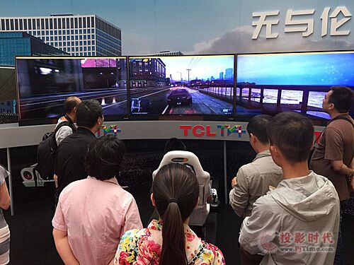“用H8800玩賽車競速游戲,逼真地仿佛讓人置身其中,而且能夠看得更廣,更清晰,彎道漂移什么的不要太爽!“在最受矚目的曲面電視展區(qū),六臺H8800拼成的兩個三聯(lián)屏給游戲愛好者不少驚喜。相對于平板電視,曲面電視不僅讓人眼看影像更加平衡、舒適,而且還可創(chuàng)造出更寬闊的全景視角,讓電視畫面看起來比實際尺寸更大,實現(xiàn)全景式的媲美IMAX影院級的臨場感體驗,而實現(xiàn)了行業(yè)最高4000R 曲率的H8800,真正帶來無以倫比的臨場感體驗,這是其他產(chǎn)品無法比擬的。