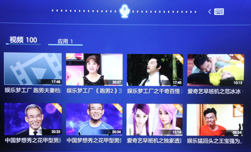 語音搜索到100個(gè)和“我想看跑男”有關(guān)聯(lián)的影視資源,和1款應(yīng)用