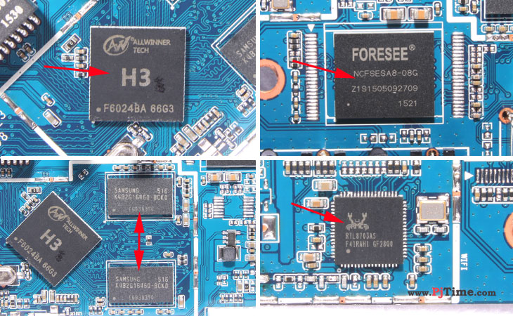 在核心處理器方面,開(kāi)博爾F1青春版采用了全志H3解決方案,全志H3是一款針對(duì)于4K OTT盒子專(zhuān)門(mén)開(kāi)發(fā)的解決方案芯片,支持H.265/HEVC 4K視頻硬解碼及4K視頻點(diǎn)對(duì)點(diǎn)輸出,內(nèi)嵌Mali 400mp2 GPU,支持Supports OpenGL ES 2.0。內(nèi)存方面,采用了兩顆三星K4B2G1646Q內(nèi)存顆粒,單顆容量256MB,共計(jì)512MB,正式發(fā)售機(jī)型則采用了兩顆三星K4B4G1646D內(nèi)存顆粒,單顆容量512MB,共計(jì)1GB。閃存方面采用了江波龍eMMC存儲(chǔ)芯片,容量為8GB。網(wǎng)絡(luò)方面采用了RTL8703AS網(wǎng)絡(luò)IC芯片。