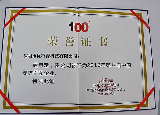 本屆中國安防百強評選組委會首次把安防產(chǎn)品生產(chǎn)商、系統(tǒng)集成商、外資企業(yè)放在同一平臺上進行評選。深圳市優(yōu)特普科技有限公司憑借著過硬的產(chǎn)品和服務(wù),不斷地創(chuàng)新進取,獲得了客戶和行業(yè)的認可,榮膺“中國安防百強企業(yè)”稱號。