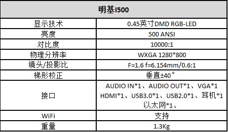點評:在整個產(chǎn)品功能設(shè)計上,明基I500所配備的超短焦鏡頭最為實用,即便在狹小的空間內(nèi)也能投射出理想的投影畫面尺寸。同時,作為從傳統(tǒng)投影產(chǎn)業(yè)涉足進來的明基而言,在技術(shù)實力方面相比其他品牌也要更勝一籌,所以在產(chǎn)品質(zhì)量及產(chǎn)品的穩(wěn)定性方面也會更加可靠。