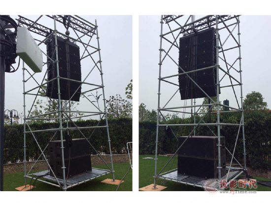 外場觀眾等候區(qū)使用了5組L-Acoustics 雙12寸線性陣列揚(yáng)聲器K2和雙18寸超低揚(yáng)聲器SB28。每組包含6只K2和2只SB28。