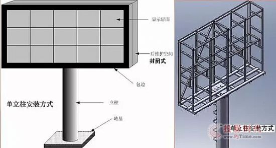 LED電子顯示屏立柱式安裝方式