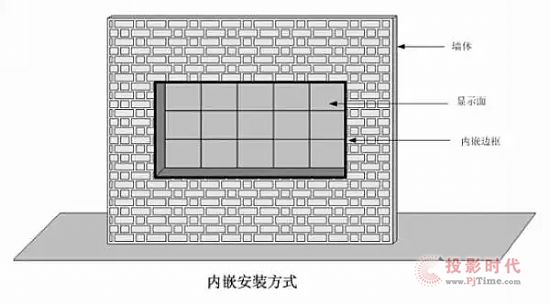 1)整個(gè)顯示屏體嵌入墻體,顯示平面與墻面在同一水平面