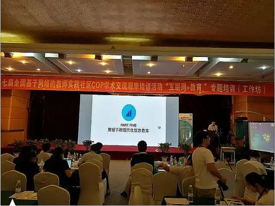 8月13日上午9點(diǎn)整,第七屆全國(guó)基于網(wǎng)絡(luò)的教師實(shí)踐社區(qū)COP學(xué)術(shù)交流觀摩培訓(xùn)活動(dòng)“互聯(lián)網(wǎng)+教育”專(zhuān)題培訓(xùn)(工作坊)-(以下簡(jiǎn)稱(chēng)教師工作坊)正式在云南昆明世博花園酒店召開(kāi)。教師工作坊是為期三天的COP學(xué)術(shù)研討會(huì)中第一個(gè)日程,由擁有先進(jìn)教育設(shè)備技術(shù)的企業(yè)與首都師范大學(xué)的專(zhuān)家教授一起,從技術(shù)發(fā)展與教育研究的角度,為來(lái)自全國(guó)各地的教師代表提供技術(shù)培訓(xùn),幫助教師提高互聯(lián)網(wǎng)技術(shù)支持下的教學(xué)技能的提高。