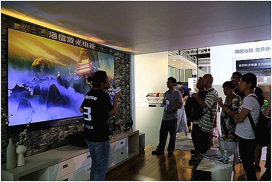 說起海信最值得稱道的產(chǎn)品,還是達(dá)到世界級水平的電視新品。其中ULED超畫質(zhì)電視、100英寸激光電視等都是在全球市場同類產(chǎn)品中的佼佼者。巡展現(xiàn)場最閃亮的焦點(diǎn)就要數(shù)100英寸激光電視,這一產(chǎn)品代表著全球下一代電視顯示技術(shù)。據(jù)海信工程師介紹,激光電視集中體現(xiàn)了電視和影院的優(yōu)勢特征,比普通電視色彩更豐富、畫面更真實(shí)。