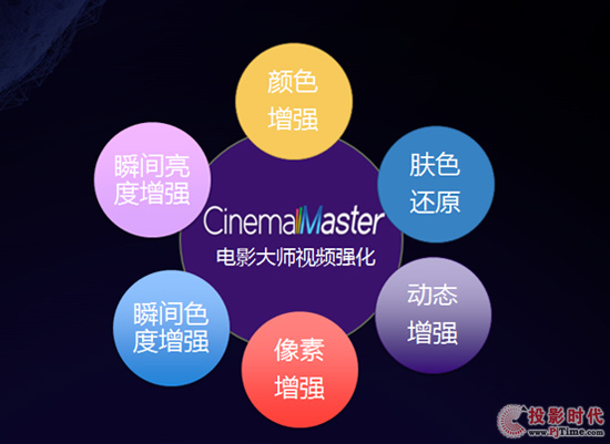 接下來,針對(duì)4K產(chǎn)品升級(jí)的CinemaMaster“電影大師”視頻增強(qiáng)技術(shù)則進(jìn)一步提升了投影機(jī)畫面質(zhì)量,該技術(shù)擁有五大功能:色彩增強(qiáng)技術(shù),消費(fèi)者可以更加靈活地調(diào)整色彩飽和度,體會(huì)微妙的色彩細(xì)節(jié);像素增加4K技術(shù),能夠提升目前高清藍(lán)光DVD質(zhì)量至4K效果,強(qiáng)化影片色彩、細(xì)節(jié)等,甚至將3D電影升級(jí)到4K質(zhì)量;膚色增強(qiáng)技術(shù):自動(dòng)調(diào)節(jié)人物膚色,而不改變圖像中其他物體的顏色;色彩瞬間增強(qiáng)技術(shù)和亮度瞬間增強(qiáng)技術(shù),優(yōu)化對(duì)比色邊緣細(xì)節(jié),帶來更好的色彩、亮度表現(xiàn)。CinemaMaster視頻增強(qiáng)技術(shù)讓影音發(fā)燒在享受原汁原味色彩魅力的基礎(chǔ)上,進(jìn)一步獲得優(yōu)化的畫質(zhì)效果!