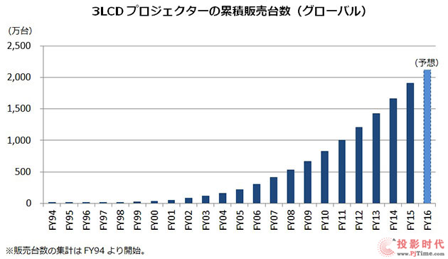 愛普生自1989年開始銷量3LCD投影機(jī)以來,產(chǎn)品線已覆蓋教育、商用、家用和工程投影機(jī)領(lǐng)域。同時(shí)愛普生表示,連續(xù)21年在日本排行第一(95-15年富士奇美拉研究所公司調(diào)研數(shù)據(jù)),在世界上已經(jīng)連續(xù)15年占據(jù)市場(chǎng)份額第一(01-15年Futuresource調(diào)研數(shù)據(jù))。