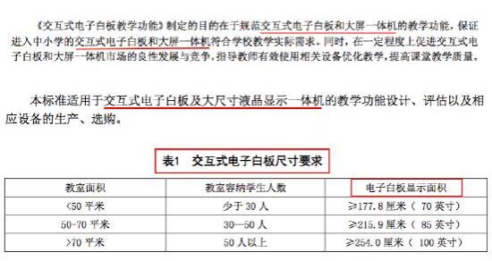 首先從教育部行標(biāo)的定義來看,原文件多處明確將交互式電子白板和大屏一體機(jī)區(qū)分為兩類產(chǎn)品,也寫明是“交互式電子白板尺寸要求”,因此可見此處電子白板尺寸要求是不包括大屏一體機(jī)的,我們不能將電子白板和大屏一體機(jī)尺寸標(biāo)準(zhǔn)混為一談,造成錯(cuò)誤的解讀。