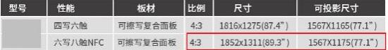 以市場(chǎng)上某品牌的產(chǎn)品為例,89.3吋的電子白板投影實(shí)際顯示面積僅為77.1吋。