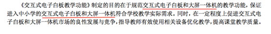 近日,國家教育部發(fā)布了教技【2017】6號文件《交互式電子白板》系列兩項教育行業(yè)標準,包括《交互式電子白板教學功能》和《交互式電子白板 教學資源通用文件格式》,旨在更好規(guī)范交互式電子白板和大屏一體機的教學功能,保障教育信息化健康有序發(fā)展。但業(yè)內(nèi)卻出現(xiàn)一種聲音,將行標中提到的電子白板尺寸要求強加給大屏一體機,引發(fā)了許多爭議。