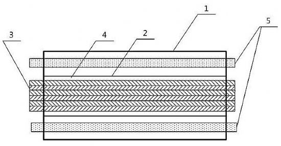 下圖1為博昇光電的混合銅線的帶狀光纖光纜的截面圖,圖2位平面圖。由以下幾個(gè)部分構(gòu)成:絕緣層(1)、槽道(2)、帶狀光纖(3)、銅線(5)。槽道設(shè)于絕緣層的中心,用于放置帶狀光纖。帶狀光纖與槽道的內(nèi)壁之間具有空閑空間(4)。帶狀光纖(3)是由多個(gè)單根光纖(31)排列成一排進(jìn)行粘邊固定后形成的具有扁平形狀的光纖帶,可根據(jù)實(shí)際情況,在槽道中放置不同光纖數(shù)(2根、4根、6根或8根)的帶狀光纖。