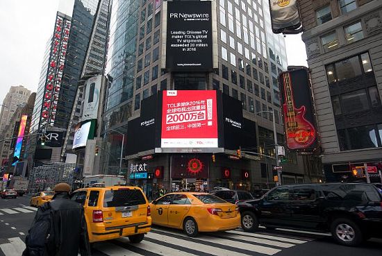 時代廣場致敬中國智造:TCL多媒體全球電視出貨量超2000萬臺