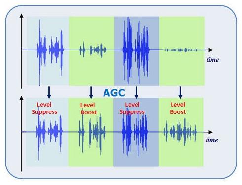 AGC 自動增益控制也稱為智能電平控制技術(shù),自動增益控制提供語音電平調(diào)節(jié)能力,它把減弱了的和加強了的信號映射到一個用戶定義的最理想電平。