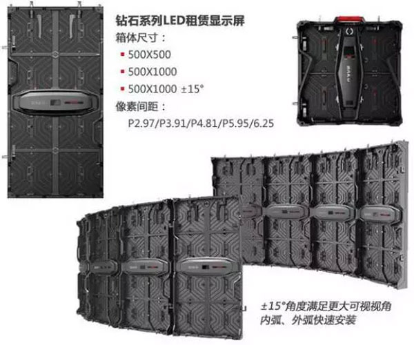 巴科鉆石系列租賃顯示屏巴科鉆石系列租賃顯示屏行業(yè)首創(chuàng)無排線設(shè)計,模組與箱體之間無電源線、無排線設(shè)計,抗干擾能力更高,靈活性更強;信號雙備份。鉆石系列箱體提供鎂鋁合金與壓鑄兩種可供客戶選擇。由于箱體材質(zhì)更輕、更薄,安裝便捷,大大縮短安裝拆卸時間,節(jié)約人力成本開支。巴科光電鉆石系列箱體更是“人如其名”,不僅如鉆石般靚麗、璀璨奪目,更具有“鉆石”般的強度和硬度,箱體采用特殊結(jié)構(gòu)和材質(zhì)工藝,確保千平米無縫拼接不變形。鉆石系列租賃顯示屏提供500X500、500X1000兩種標準尺寸箱體,點間距有P2.97、P3.91、P4.81、P5.95、P6.25多種選擇,滿足不同租賃市市場的應(yīng)用需求。