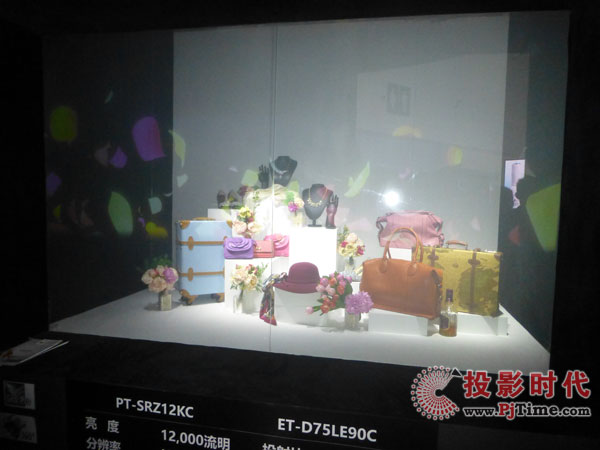 在該展項中,除了運用1臺PT-SRZ12KC投影機外,還運用了松下最新研發(fā)的透明膜,投射在玻璃上即可呈現(xiàn)出美輪美奐的精彩畫面,與櫥窗內的物品交相呼應形成了絕妙的視覺體驗。