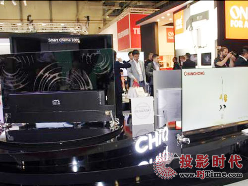 長虹作為國內傳統(tǒng)彩電廠商之一,在各大展會上都能看到它的身影,IFA展也自然不例外。在此次展會上,長虹重點展示了水晶電視、8K電視以及超薄概念的墻紙電視,現(xiàn)場站臺非常氣派。